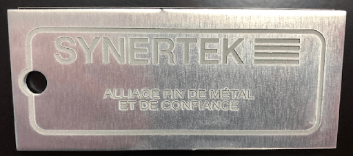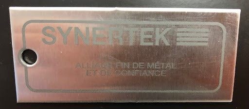 Enjoy professional metal engraving services thanks to our laser engraving machine. We are able to help you with all your engraving projects. Synertek is a company specialized in metal transformation services.