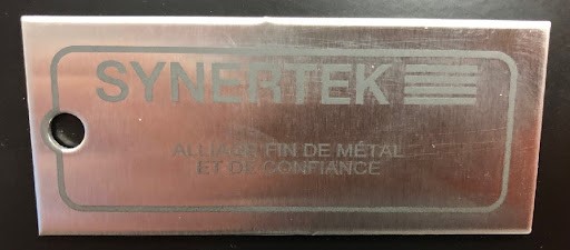 Profitez d'un service de gravure de métal professionnel grâce à notre machine à gravure laser. Synertek est une entreprise spécialisée dans les services de transformation de métal. Nous sommes donc en mesure de vous aider avec tous vos projets de gravure.